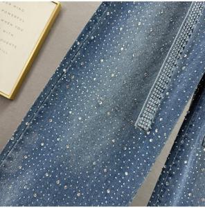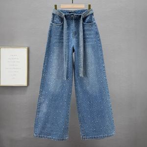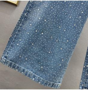 Cotton Wide Leg Trousers Women Jeans & loose & with rhinestone PC