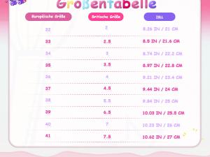 Our Size Heel To Toe Europe US UK
